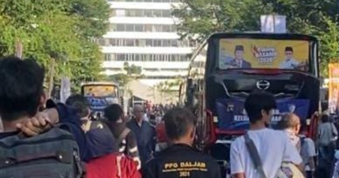 JAKARTA,KLIKSIAR– Antusiasme perantau Minangkabau untuk baliak ka kampuang halaman pada momentum Lebaran 2026 terlihat begitu tinggi. Sejak pagi, ratusan peserta sudah memadati kawasan Gerbang Pancasila, Gedung DPR RI, Jakarta, Minggu (15/3/2026). Tas dan koper tampak berjejer di antara para perantau yang bersiap menempuh perjalanan panjang menuju ranah Minang.