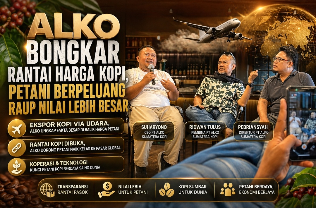 PADANG,KLIKSIAR — PT ALKO Sumatra Kopi mendorong transparansi rantai pasok kopi sebagai langkah strategis meningkatkan kesejahteraan petani. Selama ini, petani dinilai kerap menjual kopi dengan harga rendah karena minim informasi terkait distribusi dan struktur biaya.