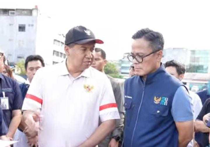 Menteri PKP Maruarar Sirait bersama Kepala BP BUMN Dony Oskaria langsung meninjau lokasi di Jalan Kramat Raya, Jakarta Pusat.
